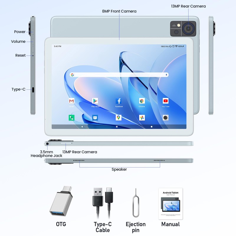 - 【FASTER AND MORE STABLE CONNECTIVITY】The 10.1-inch tablet supports 5G and 2.4G dual-band WiFi connectivity. This 5G WiFi tablet enables fast web browsing and quick video loading, resulting in a smoother Android tablet experience for ultimate video watching and gaming.