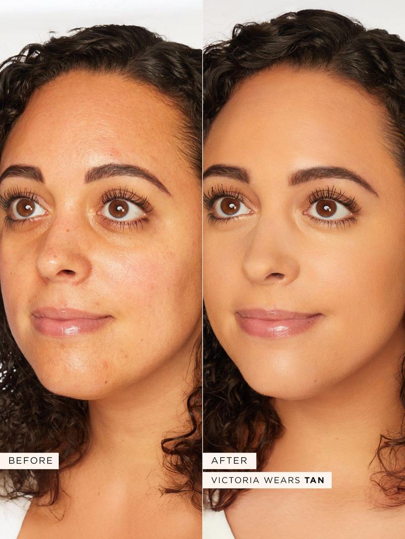 - Dispense a small amount to the back of your hand, then using a foundation brush or your fingertips, lightly dab onto face and gently blend.