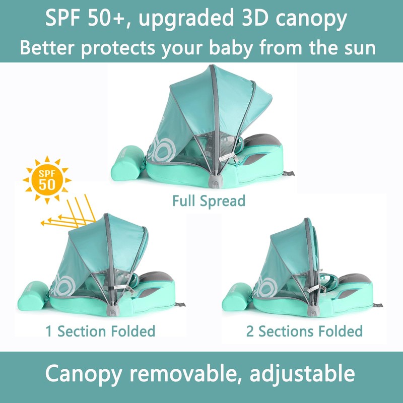 - 【New Upgrade Canopy】: The floating roof is 3D shaped, SPF 50+ and can be adjusted to half shade,full shade,and also removable,which can protect baby's skin from the sun and let baby enjoy swimming in summer. This new canopy folds easily when not in use, ensuring convenient storage.