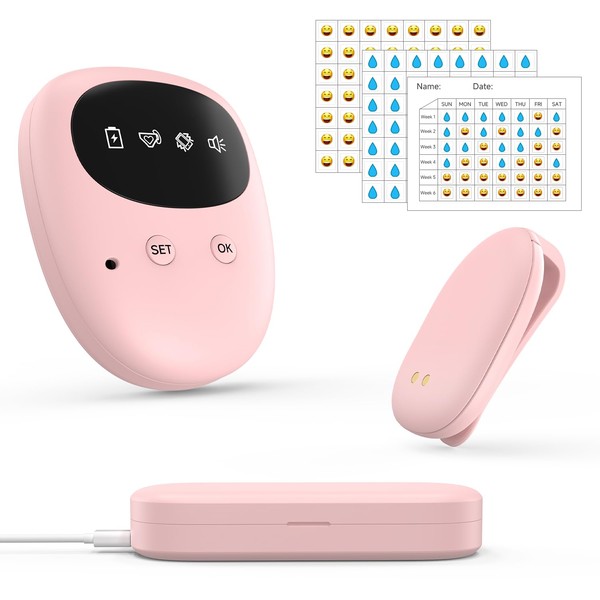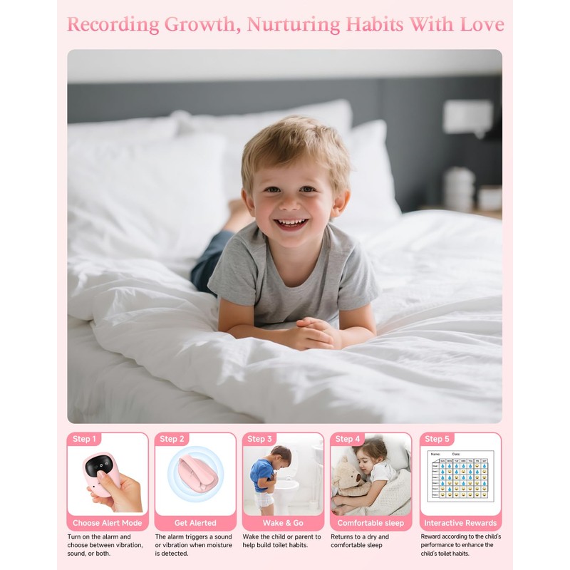 2025 New Wireless Bedwetting Alarm for Boys&Girls, USB-C Rechargeable,High Sensitivity,3 Modes (Sound/Vibration/Combo),Nighttime Potty Training Aid,Includes Progress Card,Stickers & Portable Case,Pink
