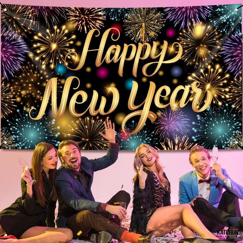 - LARGE SIZE: The size of 'Happy New Year' backdrop banner is 70.8inch*43.3inch, it is large enough for the new year party decorations as signature wall sign and for photography background at your party