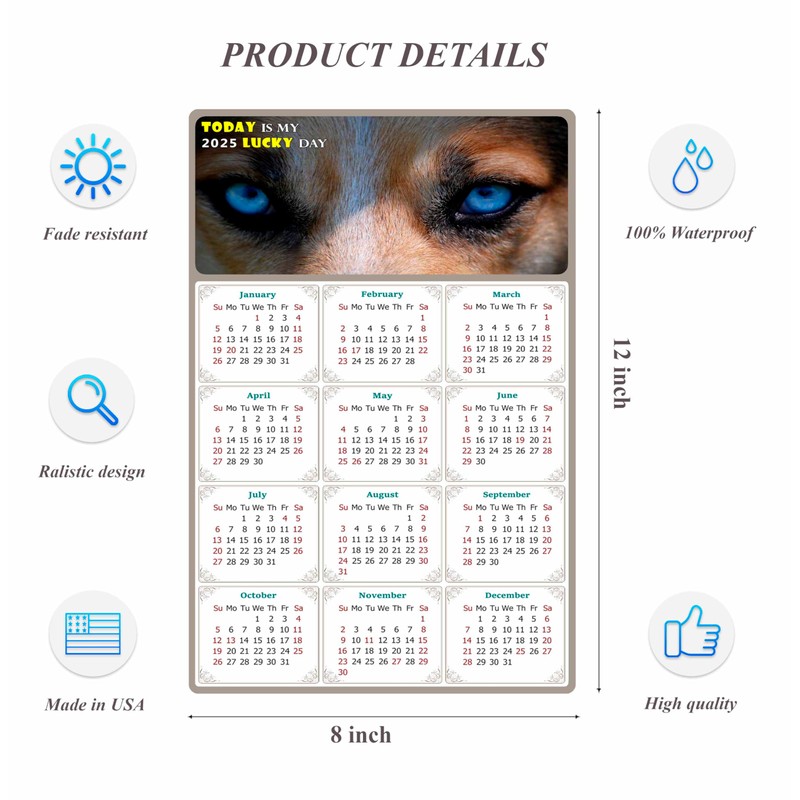 2025 Peel & Stick Calendar - Today is my Lucky Day - Removable, Repositionable (Fade, Tear, Water Resistant, Remove & Reuse) - Dogs 03 (12"x 8")