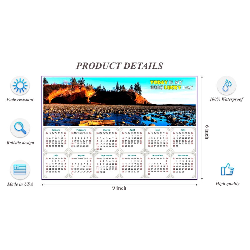 2025 Peel & Stick Calendar - Today is my Lucky Day - Removable, Repositionable (Fade, Tear, Water Resistant, Remove & Reuse) - Shepholdy bay (9"x 6")