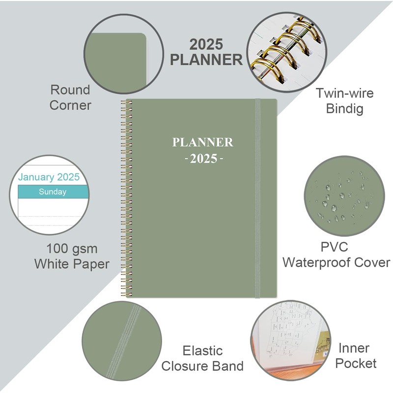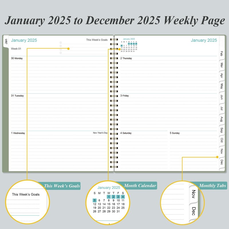 - PREMIUM THICK PAPER - This 2025 planner spiral bound is white paper, thicker at 20% than normal, the paper of this planner is ink-proof and is designed to avoid feathering. Archival-quality pages made from acid-free paper, resistant from damage by light and air