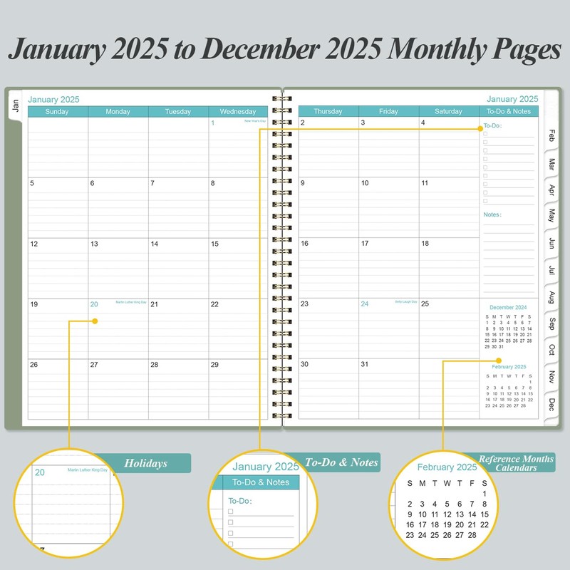 - Planner 2025 - Weekly & Monthly from Januray 2025 to December 2025, 12 months planner great for an easy year-round planning and organizing. The size is 8.5" x 11", suitable for your backpack or work bag