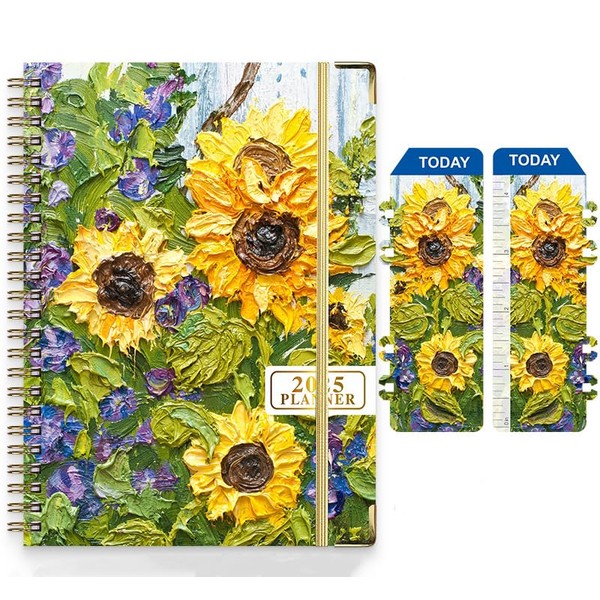 2025 Planner, Weekly and Monthly Planner Book, Jan.2025 to Dec.2025, A5 (6.2'' x 8.5") with Tabs, Metal Cladding Round Corners, Ideal for School, Teacher, Office (Sunflower)