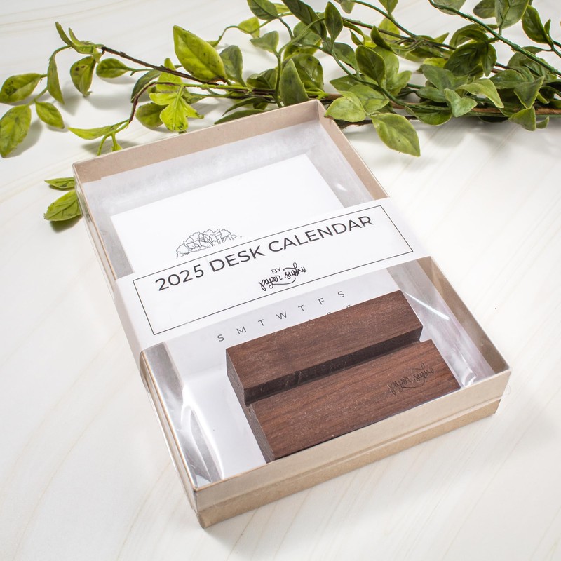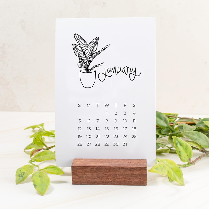 2025 Potted Plant Illustrated Desk Calendar with Wood Base