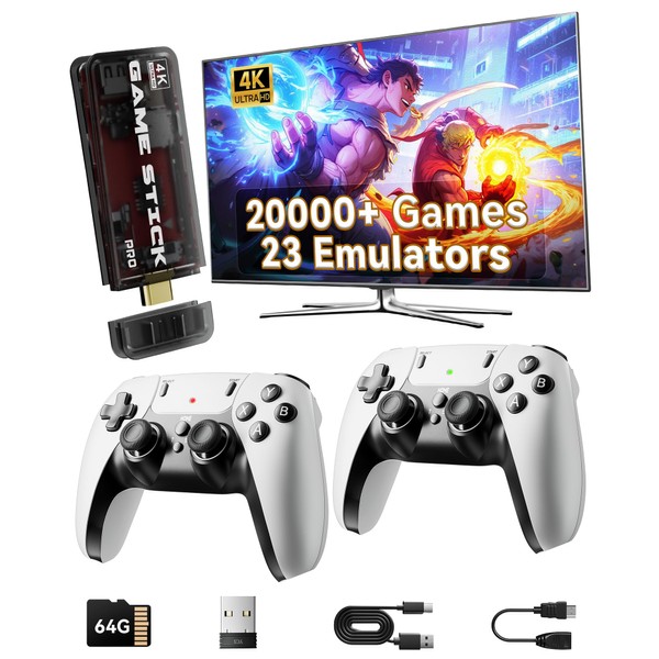2025 Retro Gaming Console Pro 4K HDMI with 20,000+ Built-in Classic Video Games, Retro Game Stick with 23 Emulators Plug & Play TV Video Gaming Stick with 64GB Memory
