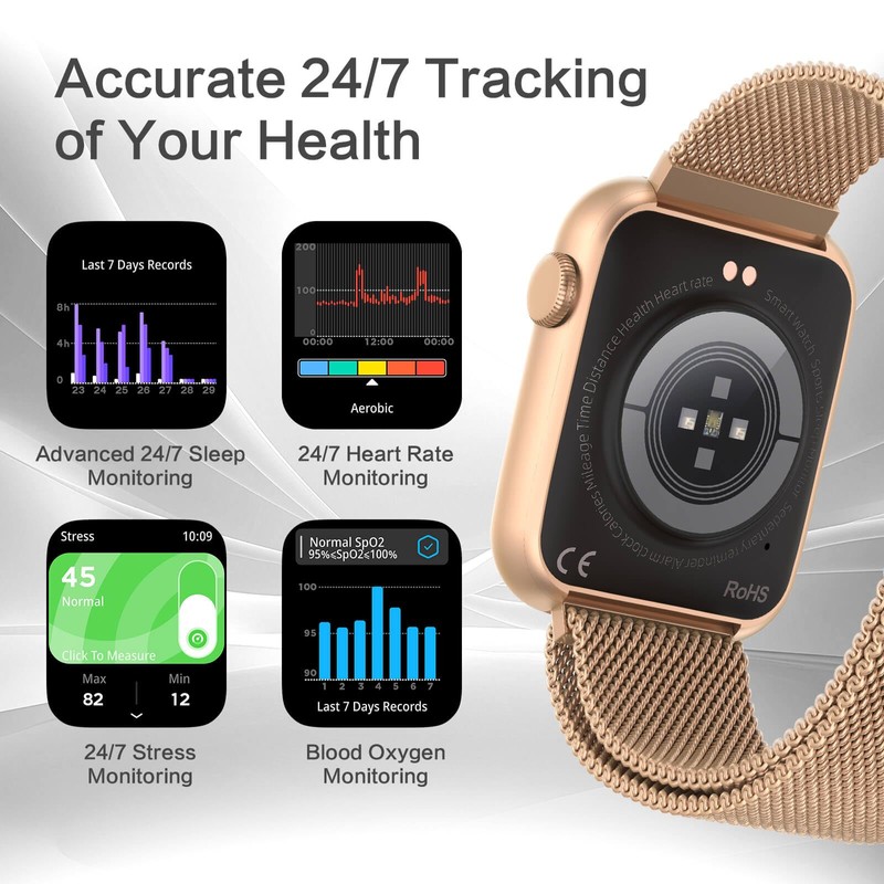 - BLUETOOTH 5.4 CALLS & SMART NOTIFICATIONS — Earlysincere smart watch is equipped with advanced Bluetooth 5.4 technology, which provides faster, more stable connection and wider coverage. With one-click pairing, you can make and receive calls directly on your wrist, enjoy clear sound quality, and check call history at any time. Real-time notifications such as SMS, Facebook, WhatsApp, Instagram, etc. allow you to easily grasp every moment. In addition, the built-in AI voice assistant frees your hands and brings ultimate convenience.