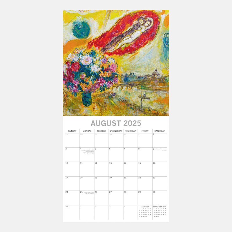2025 Square Wall Calendar - Chagall 12 x 12 Inch Monthly View, 16-Month, Art Theme, Includes 180 Reminder Stickers