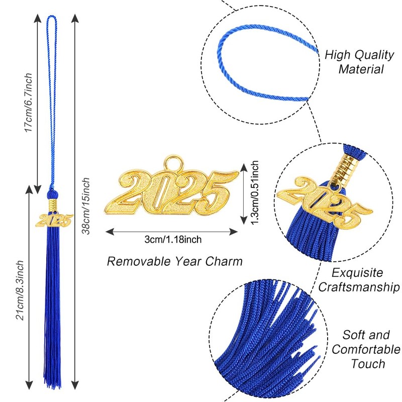- [Product Size]: The length of the graduation tassel is 22 centimeters/8.6 inches, and the length of the hanging ring is about 17 centimeters/6.7 inches, suitable for wearing graduation hats and dresses. This is the standard for graduation at most levels of American schools, colleges, and universities!
