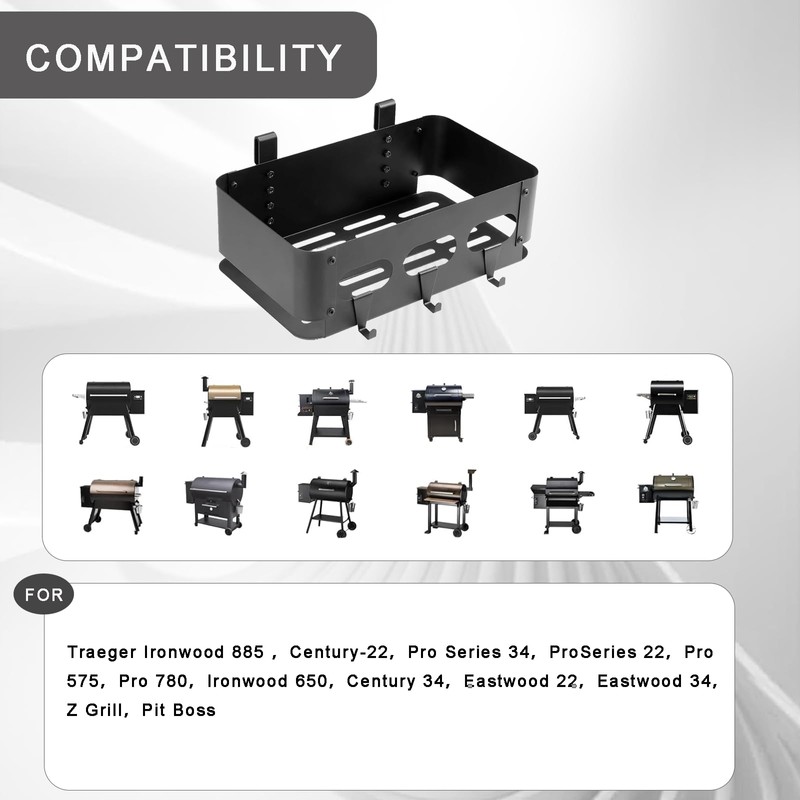 - 【Easy to Install and Use】Setting up the traeger grill accessories is a breeze! Simply assemble the included hooks, open the grill's hopper, and hang the bin on either side for quick and easy access. Note: The 3 small hooks do not have fixing screws and nut accessories.