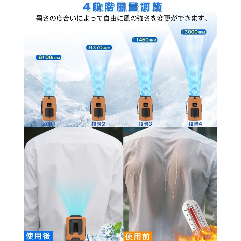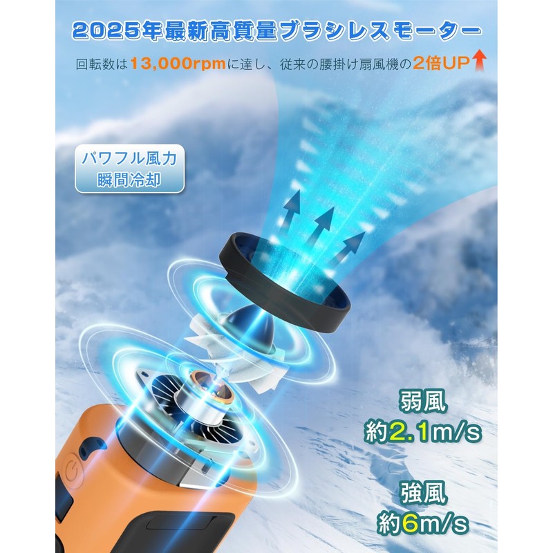 - Full Upgrade Belt Fan: This belt fan uses 2025 high density brushless motor technology, and has a revolution speed of up to 13,000 rpm, which is twice as much as conventional sitting fans. In addition, the combination of the bottom air intake wind twist structure, 9 helix blades, and a streamlined locket head design, greatly reduce the airflow resistance and make the wind more concentrated and powerful. Wind speed reaches up to 6m/s Press the switch, the powerful cool wind flows directly between your body and your clothes, efficiently remove body heat and create a cool and comfortable environment