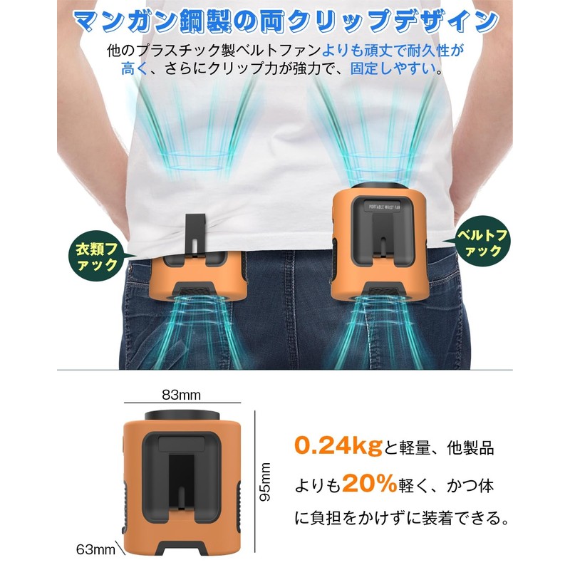 - Ideal for outdoor work: 5-in-1 portable fan: Can be used as a sitting, handbag, neck, desktop, or as an emergency mobile power supply. Manganese steel double clip design, sturdy and durable, strong clip force, can be firmly attached to the belt. Perfect for heatstroke prevention in various situations such as construction sites, farm work, delivery work, factories, warehouses, sporting events, fishing, festivals, and outdoor activities