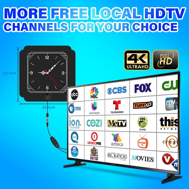 - 【Save Monthly Cable Bills】NO MORE MONTHLY BILL - with this TV antenna, you can watch crystal clear HD channels without cable service and enjoy Major Networks like CBS, ABC, FOX, NBC, CW, PBS, ION, UNIVISION, TELEMUNDO, UNIMAS, AZTECA, and so much more! Stay on top of live local programming without having to pay additional cash or lose any of your favorite local TV channels!