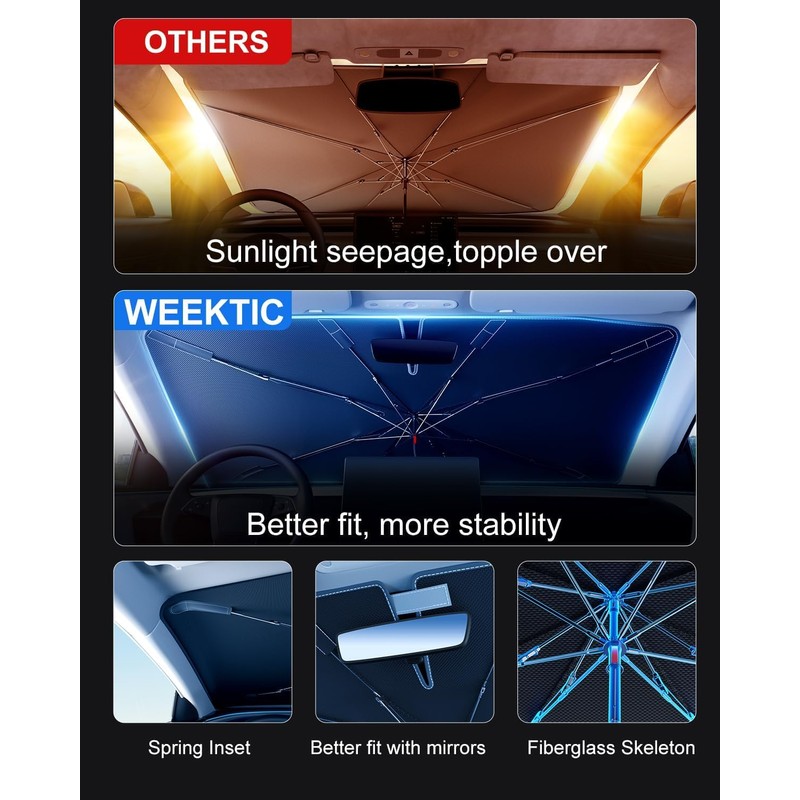 [2025 Upgrade] Weektic Windshield Sun Shade Umbrella [Urethane Coated Heat Shield] Ultimate Cooling Car Sun Shade Protect Interior from Sun Rays & Keep Cool, Large (61" L x 33" W)