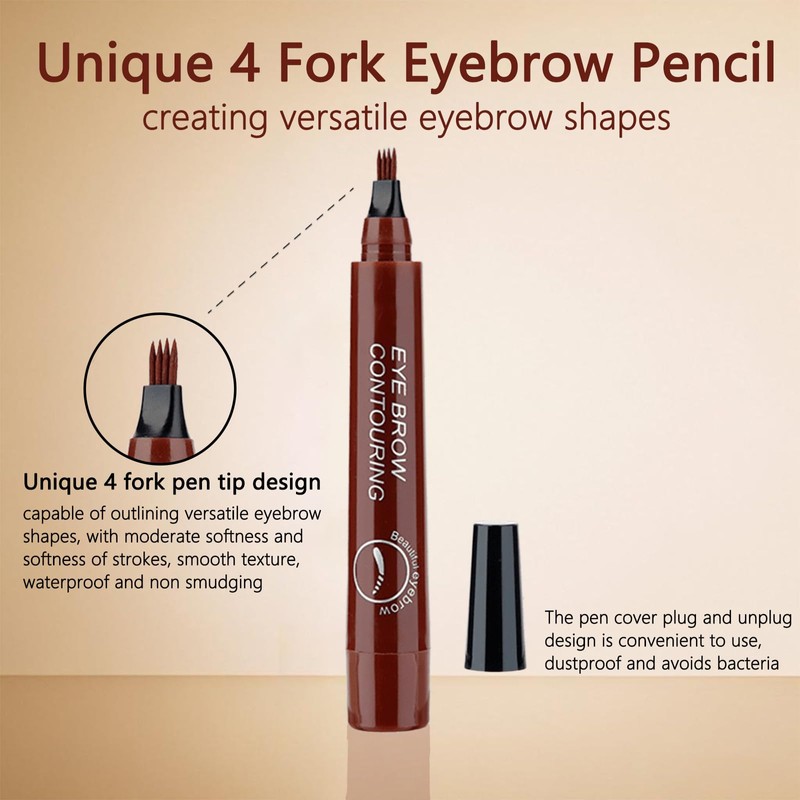 - Unique four Fork pen tip: Combing eyebrow shapes with distinct roots, resembling natural eyebrows, rich liquid coloring formula, long-lasting and natural makeup effect.
