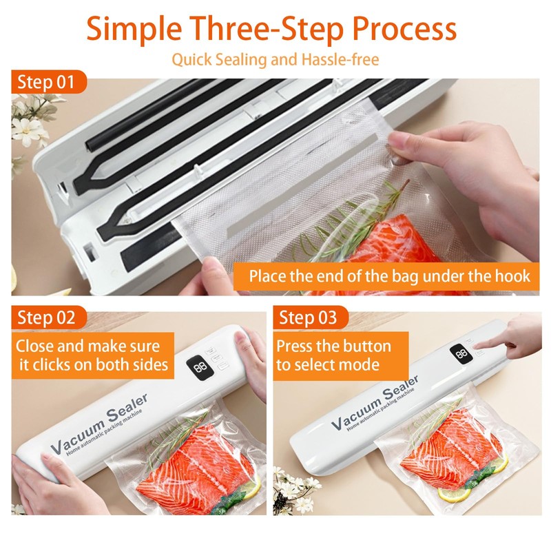 - 【Powerful Quick Vacuum Sealing】With a powerful 60kPa vacuum suction, ensuring rapid and efficient air removal from food packaging (15s for Vacuum Extraction and 7s for sealing). Locking in freshness and keeping it fresh for longer.
