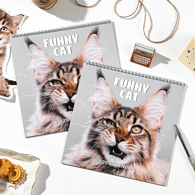 - 2025 Cat Calendar - Our funny cat calendar 2025 covers 12 months from January 2025 - December 2025. Size Closed: 9.64" W x 9.64" H, Size Open: 9.64" W x 19.3" H. Hanging hole is convenient for you to hang it on the wall.