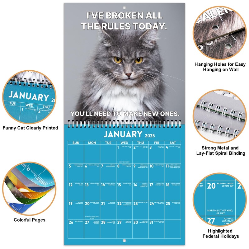 - Funny Time Management - You can use this 2025 wall calendar to jot down your notes, ideas, appointments, meetings, reminders and more. It's also perfect to hang in office and home for time management. Our funny cat calendar 2025 will make your life more interesting and organized. It also can be an ideal funny gift for cats' lovers!