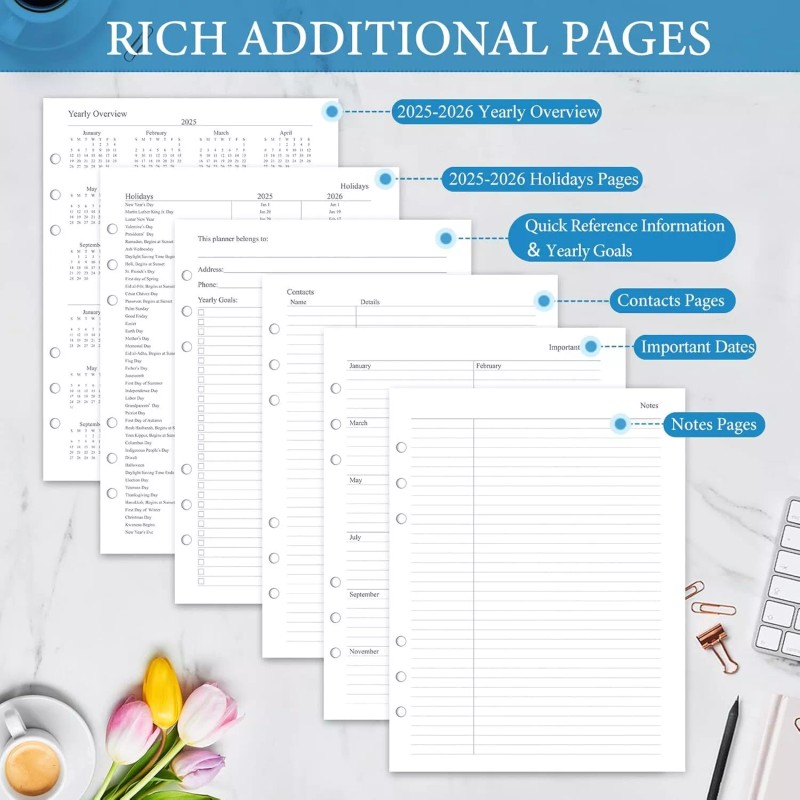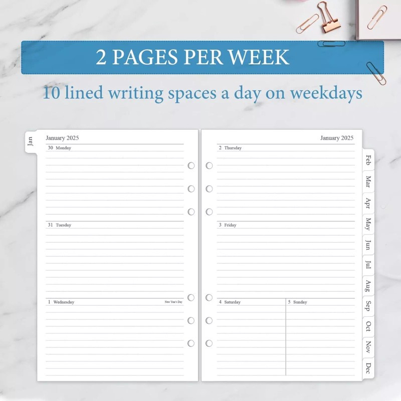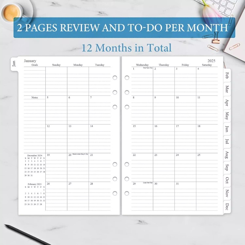 2025 Weekly & Monthly Planner Refill, A5 Planner Inserts for 6 Holes, 12 Monthly