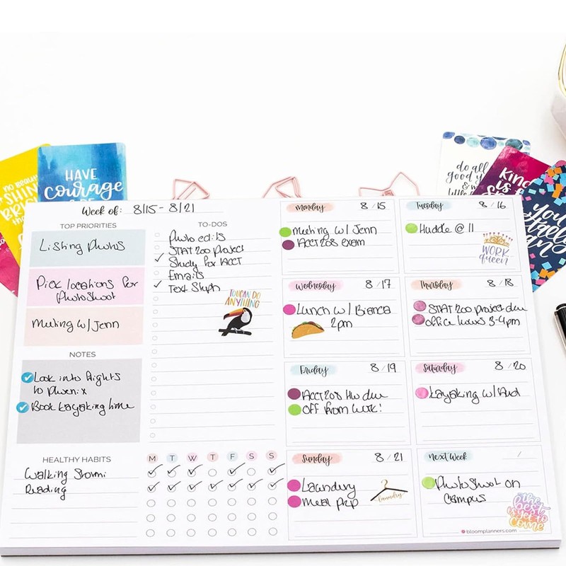 - Everything at a glance: the weekly planner has 52 pages and can be easily torn off. Depending on the design, there is a to-do list to tick off, while leaving space for your highlights and goals, notes, sketches, phone calls and more! Organize your tasks, appointments, errands or spontaneous thoughts and make sure nothing is overlooked.