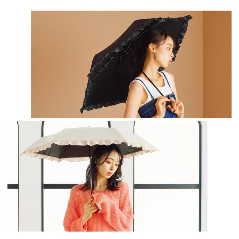 [2025] Wpc. 801-11820-102 Parasol Blackout Classic Ruffle Mini Beige <100% Shading Ratio / 100% UV Reduction / UPF 50+/Thermal Blocking/Rain / Sun / Rain / Sun / Rain / Folding Umbrella for Work or