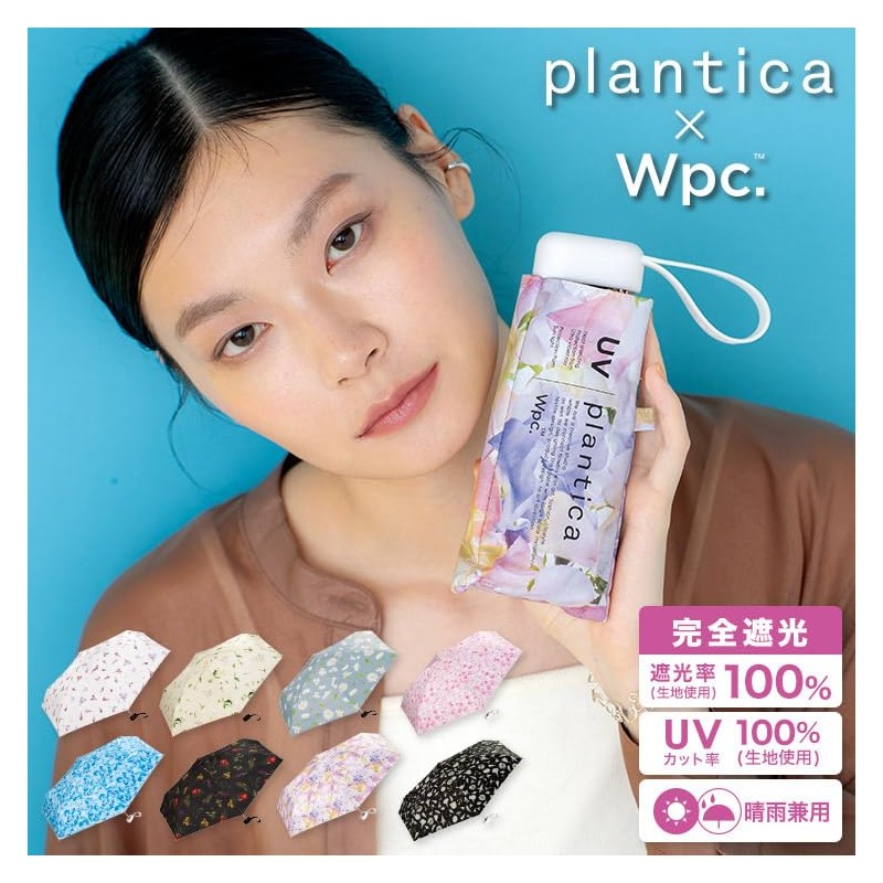 [2025] Wpc. Parasol [plantica × Wpc.] Flower Print Tiny Black <100% Light Shading Ratio / 100% UV Reduction / UPF 50+/Thermal Blocking/Rain Protection> Folding Umbrella, Lightweight, Work Commute,