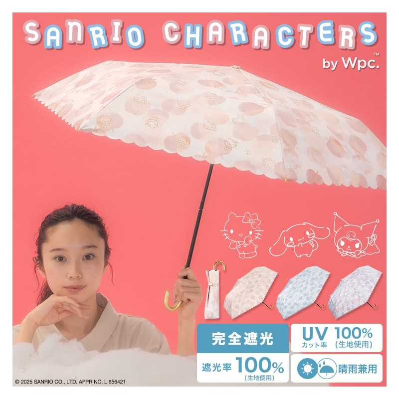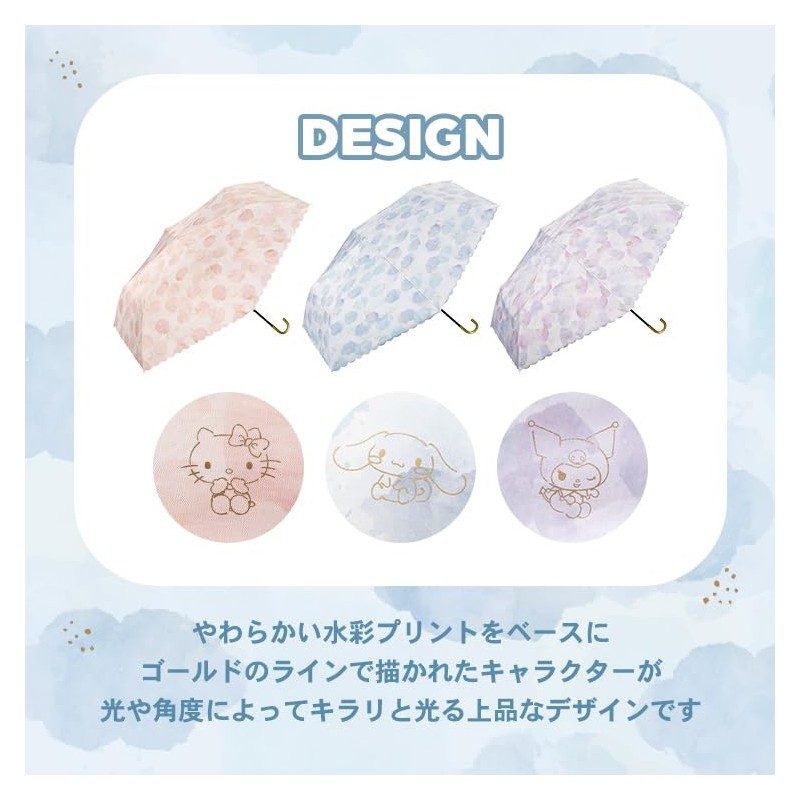 [2025] Wpc. Parasol Sanrio Characters x Wpc. Light Shielding Watercolor Motif Mini Blue (Cinnamorol) <100% Light Shading Ratio/100% UV Reduction/UPF50+/Thermal Blocking/Rain Protection> Folding