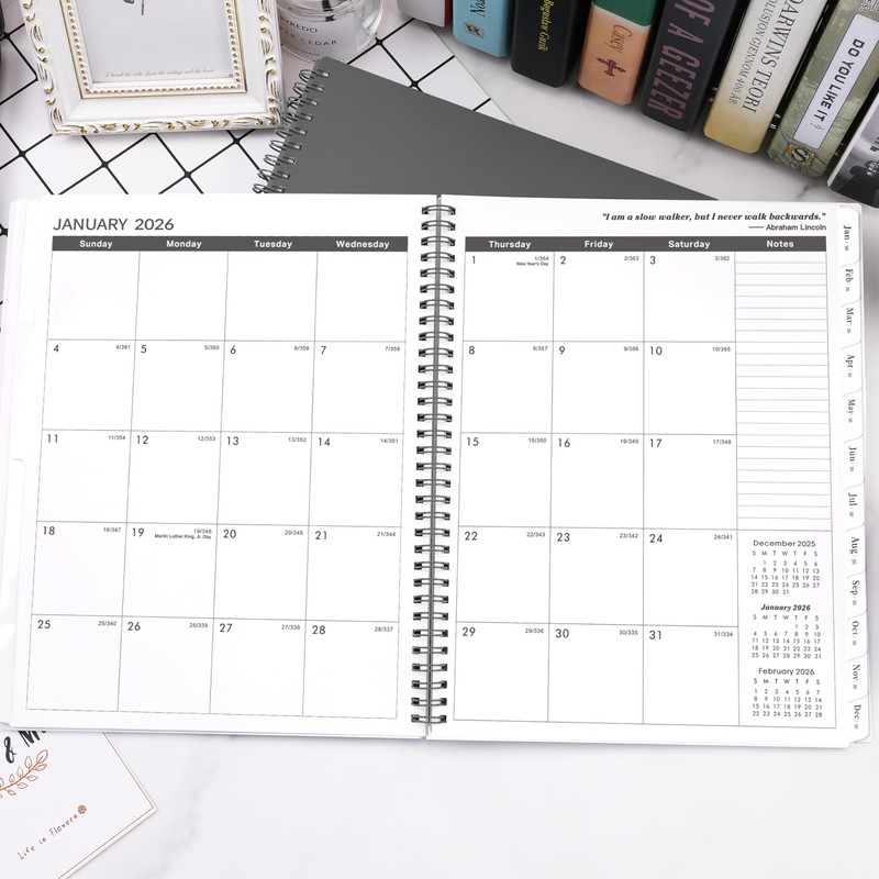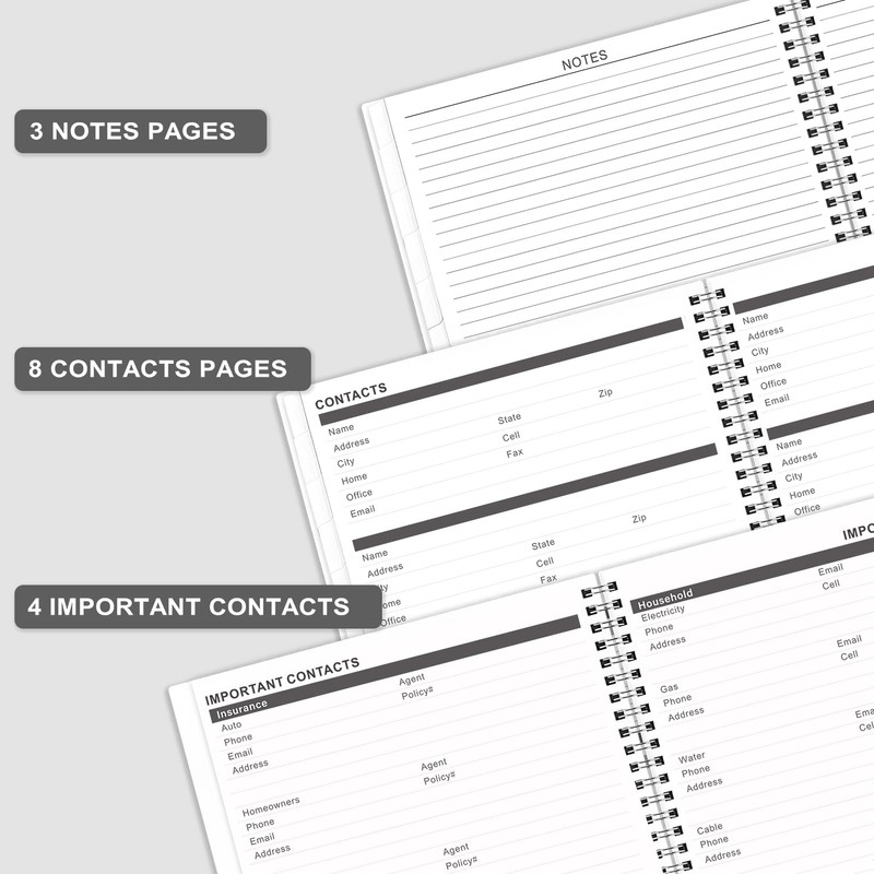 - Specialties - 9" x 11" Planning Pages | Flexible Cardboard | Premium Paper | Quick Reference Information | 8 Contacts Pages| 4 Important Contacts | 9 Notes Pages | 2026-2029 Yearly Overview | 2026-2028 Holidays | 36 Monthly Tabs | Strong Twin-Wire Binding | 2-Side Pocket |.