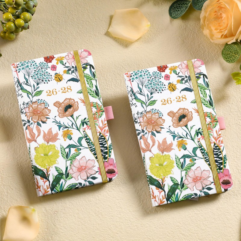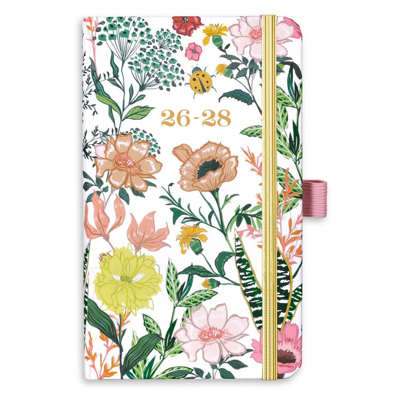 - More Features – 3.8" × 6.3" Planning Pages | Flower Hardcover | Pen Holder | Inner pocket | Yearly Overview | Holidays | 61 Ruled Note Pages | Contacts | Elastic Closure | Holidays | Lay Flat | 2 Page Divider|