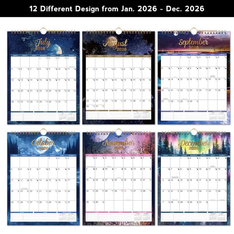 - 🌲 2026 CALENDAR - This 2026 calendar covers 12 months from January 2026 to December 2026, featuring 12 different patterns, beautiful patterns also be a decoration in your home, the size of this hanging calendar 2026 is 12" x 17", this calendar 2026 will accompany you whole year, make your life organization.