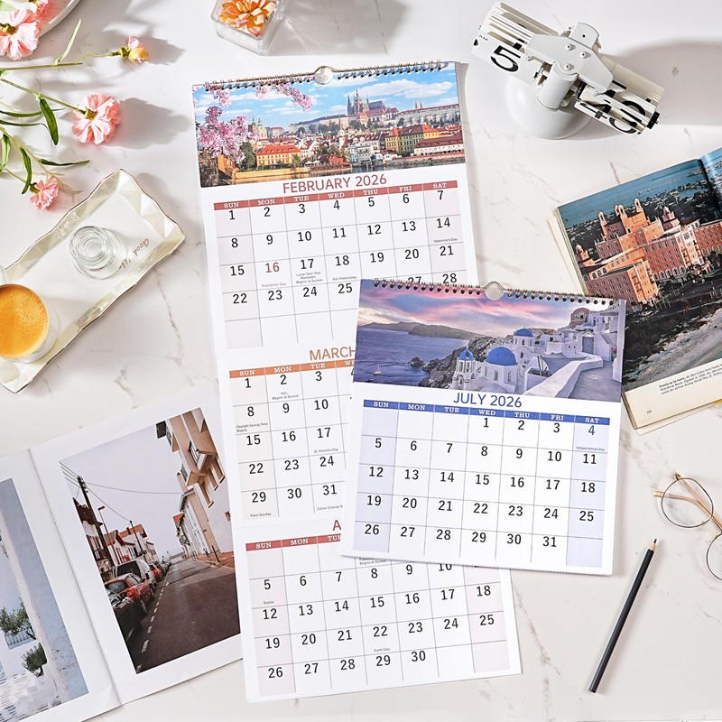 - Scenic Imagery – This 2026 wall calendar features 12 months of stunning landscape photography to brighten any room. Each month displays vibrant full-color images that provide daily inspiration throughout the year.