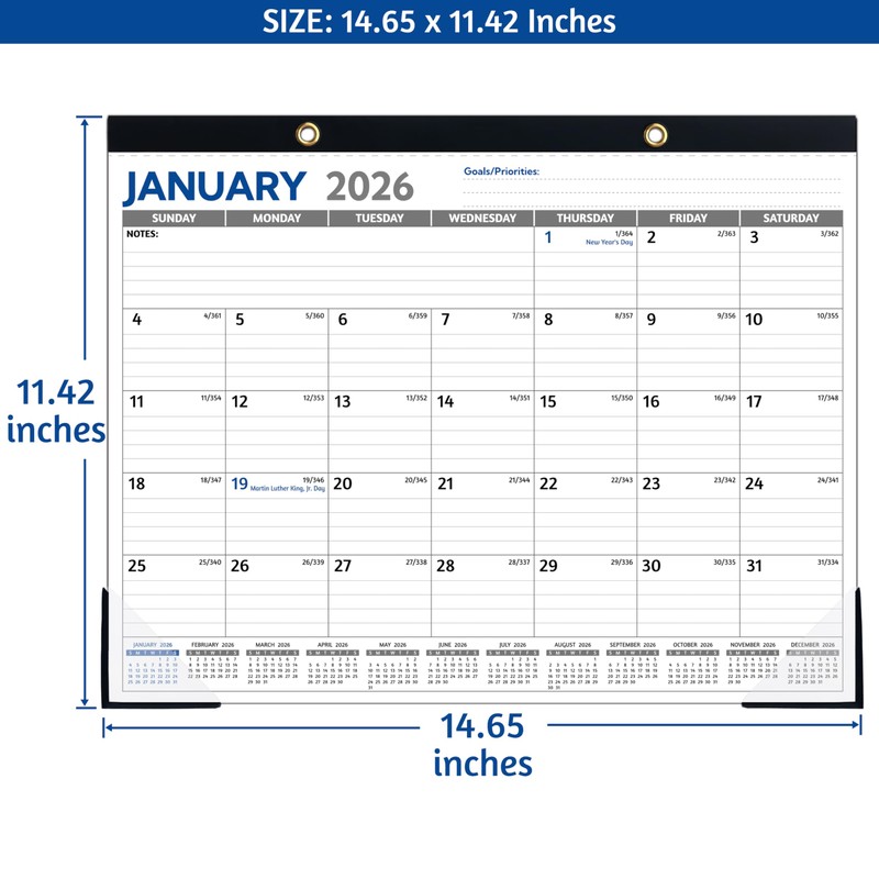 - 2026 DESK CALENDAR – January 2026 – December 2026, this desk calendar covers 12 months calendar for an easier yearly planning or tracking. Size: 14.65’’ x 11.42’’, the large calendar provides spacious writing space for daily scheduling.