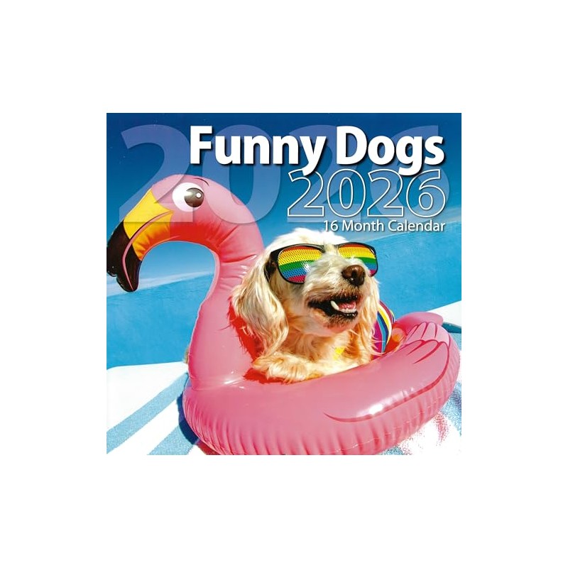 - Each month of 2026 features a different goofy and funny picture of a dog.