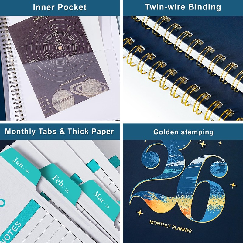 - 2026 Monthly Planner – Large planner from January 2026 to December 2026, which features with colorful cover, gold wire binding, julian dates and holidays marked for a better visual feast. Pages measure 8.5" x 11", 2026 monthly planner 8.5''x11'', wonderful size for your briefcase.