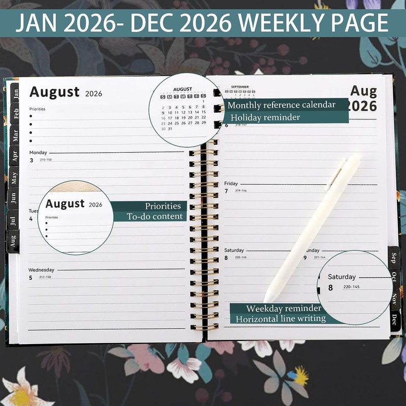 - Improve Life Efficiency - This all-in-one weekly monthly planner 2026 with durable hardcover is help you schedule all your appointments and daily activities, plan events, set goals and get things done. A great choice to motivate yourself to achieve your goals step by step, and will keep your daily life organized and improve your time management skills.