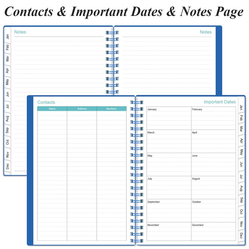 - Practical and Stylish Design: This 6.4" × 8.5" 2026 planner is both functional and stylish: thick paper feels durable; hardcover protects pages; monthly tabs and strong double-wire binding make planning easier; elastic band keeps it closed. Also includes contact lists, 2026 yearly view, reference calendars, and holiday lists for complete planning.