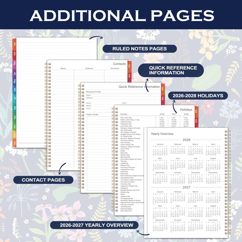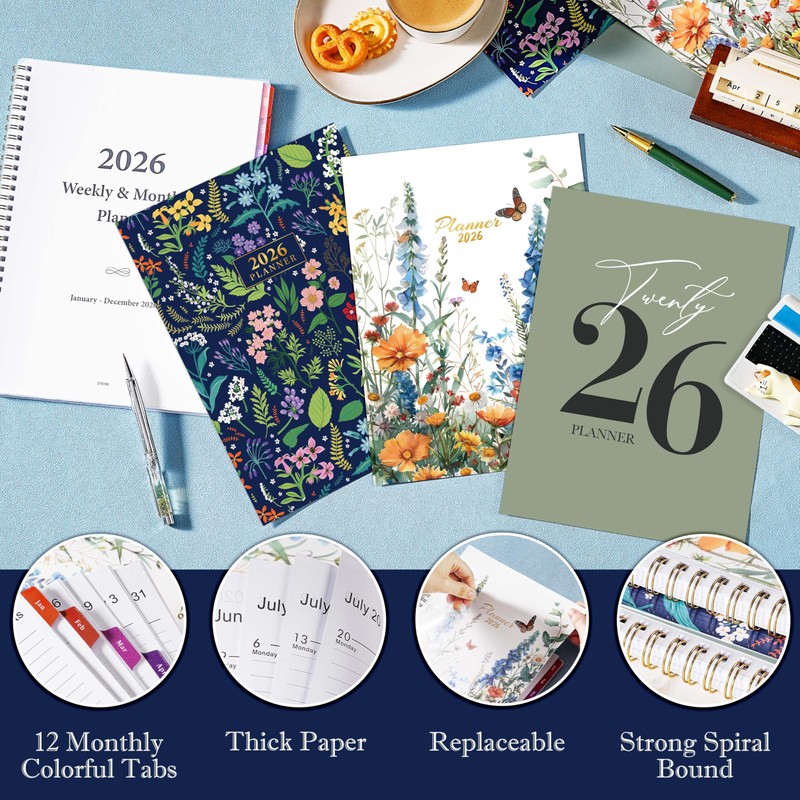 - Unique Design - Provide 3 different covers and replaceable designs to bring you a unique experience. The colorful monthly tabs of 2026 planner will help you track and posit your schedule quickly. Moreover, the back pocket can keep your loose items like plane tickets or cards.