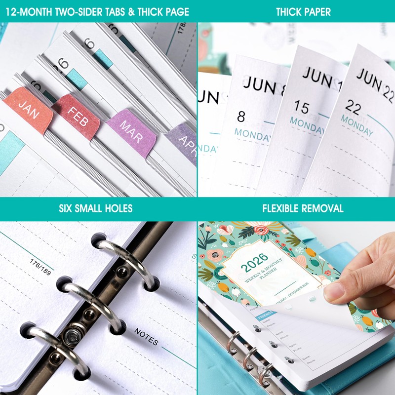 • 2026 Planner Refills - Weekly monthly planner refill in 6.4" x 3.8" covers 12 months for 2026. This planner refills features full monthly view pages for each month. The pages with full weekly view for more detailed planning. Coated monthly tabs makes it more convenient for using.