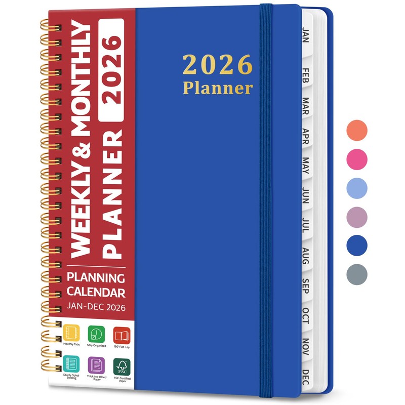 - Functionality Perfected, Style Exemplified: Revel in the embrace of 6.3" x 8.5" 2026 planner weekly and monthly, thick paper that exudes quality, and a hardcover cover adapting seamlessly to your lifestyle. Let monthly tabs and strong twin-wire binding elevate your planning journey, while the elastic band adds convenience for easy use. Contacts, a 2026 Yearly Overview, Reference Calendars, and 2026 Holidays enrich your journey.