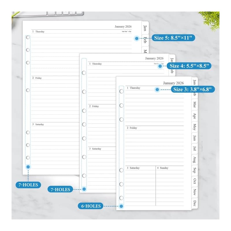 2026 Weekly & Monthly Planner Refill, A5 Medium Planner Inserts with Monthly Tabs, Size 4, 5.5"x8.5", Jan. 2026 - Dec. 2026, 7-Hole Punched