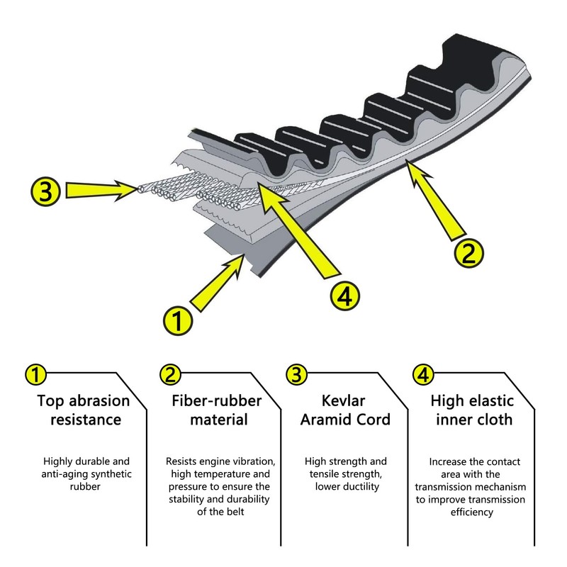• 【PREMIUM RUBBER】This torque conversion belt is made of high quality rubber material with high tensile strength. Its top fabric is resistant to oil, grease, heat and aging. The middle layer is made of resistance aramid yarn, while the bottom tooth rubber is perfectly adapted to the torque converter.