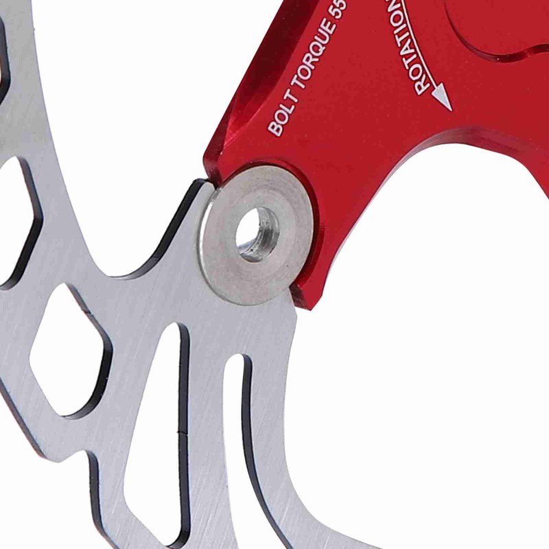 1、The reinforcement of aluminum alloy bracket completely solves the problems of rivet rubbing clamp and strength. 2、Two kinds of materials inside and outside the floating disc are connected by rivets. This connection is not rigid and has a certain amount of free, which reduces the heat transfer. 3、CNC precision manufacturing, high hardness. 4、Stainless steel floating button design, so that the outer dish is not directly locked with the hub, leaving expansion space. 5、2 different colors for you to choose, meet your different needs.
