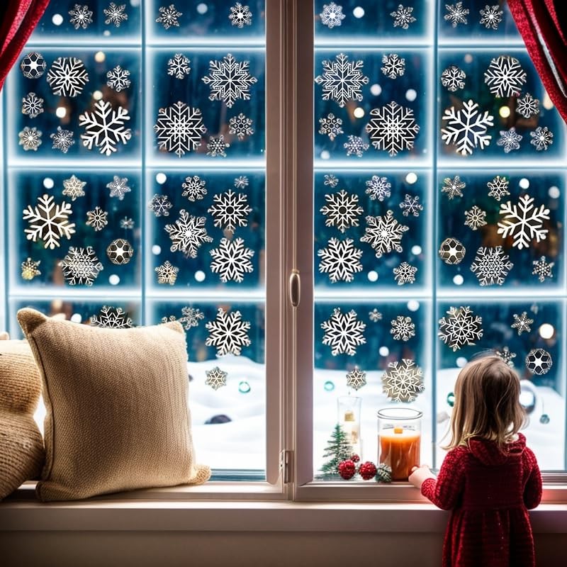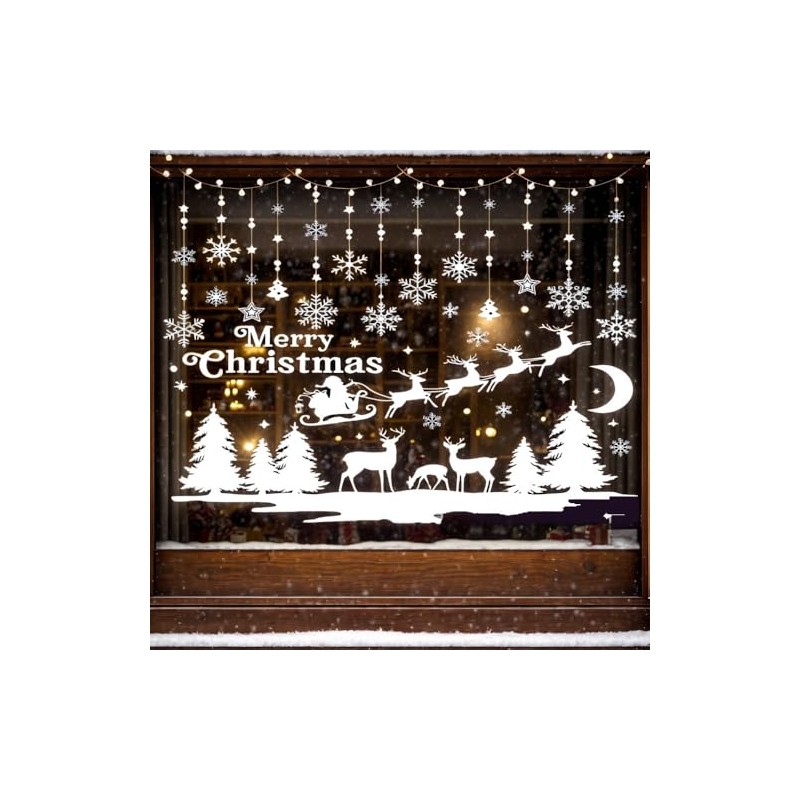 - Christmas Window Clings Snowflake Santa Claus Stickers with 9 sheets (202pcs).It includes various patterns such as Christmas trees, reindeer, white snowflakes, etc., allowing you to decorate your house to your heart's content