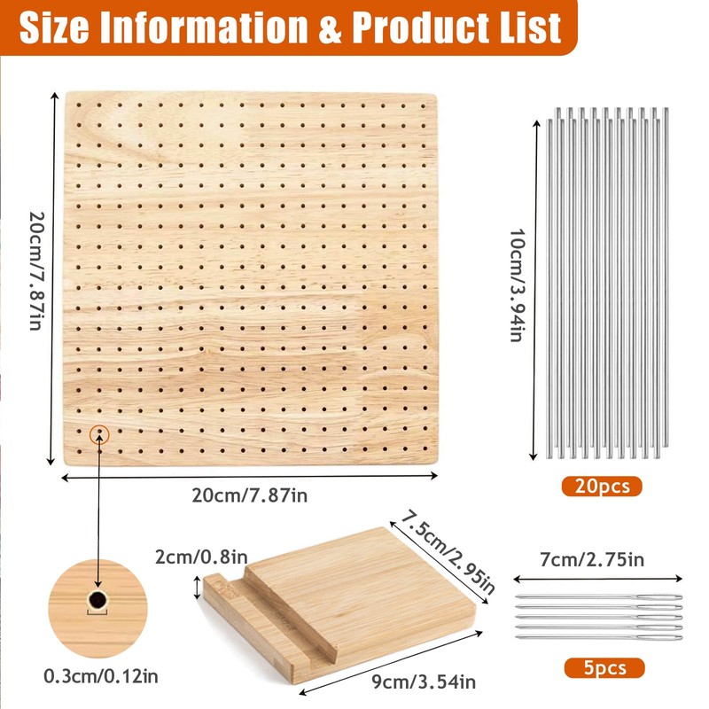 - 【Bamboo and Wood Material】Blocking board for crochet and base are made of high-quality bamboo wood, which is a sturdy and well-made, smooth surface, with nothing to snag your yarn. The pins are straight and smooth and fit in the holes perfectly in the board. The pins hold securely. The option to stand or lay flat is very useful. The blocking board is ideal for your knitting work and You will be a crochet professional with it.