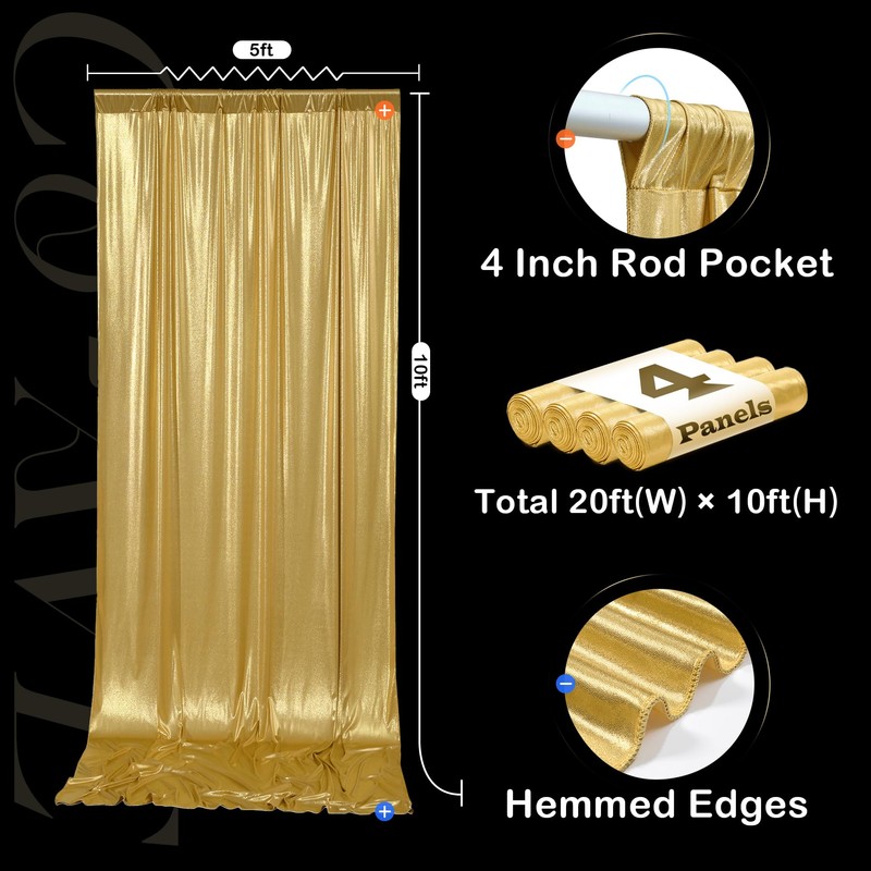 • Shimmer Backdrop Curtain: 4 Panels 5FT Width By 10FT Height Sequin Backdrop with a 4-inch rod pocket on the top for easy hanging.