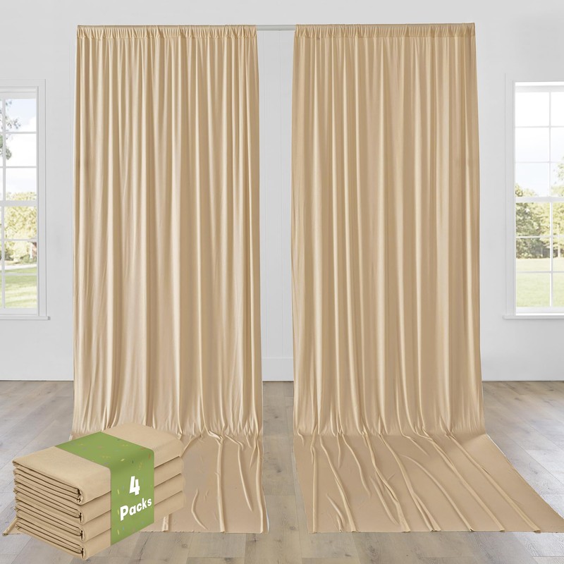 20ft x 12ft Beige Backdrop Curtain for Parties, Wrinkle Free Polyester 4 Panels 5x12ft Photo Backdrop Drapes Back Drop Cloth for Wedding Birthday Party Baby Shower Photography Background