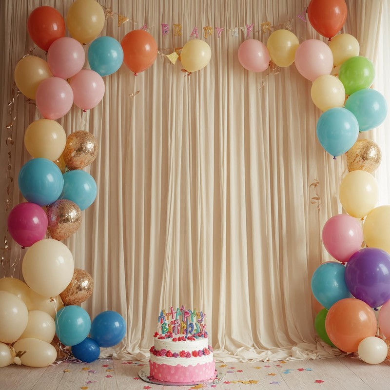 - Make you party Pops: 12 feet long polyester backdrop curtains. Decorate with balloons, party streamers, fun banners, balloon arch, butterflies, paper stars, tissue paper flower prop, confetti and more to complete your party look.