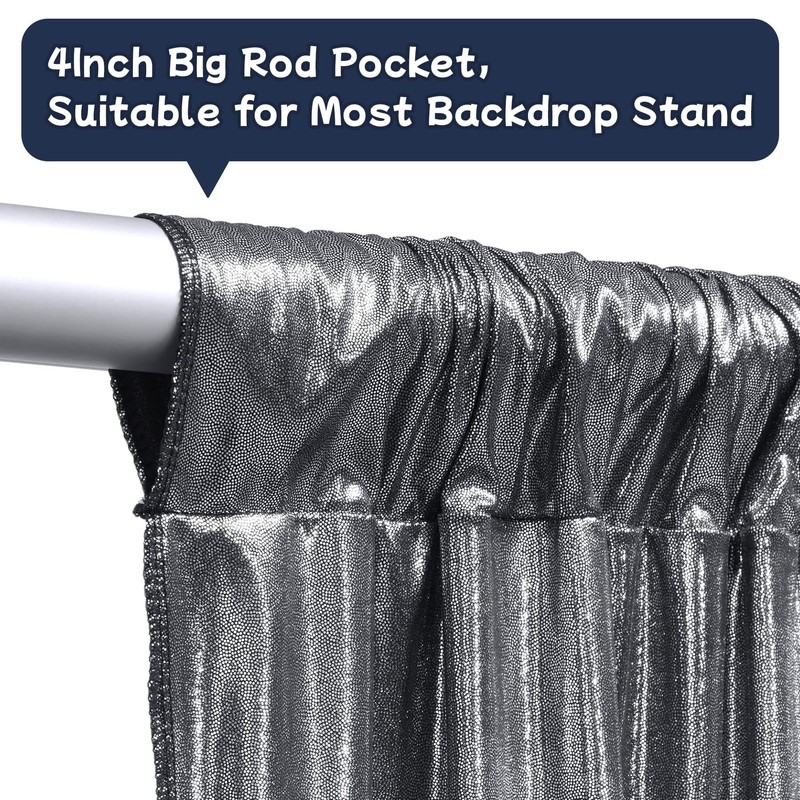 • Black Silver Backdrop Curtain 20 ft × 10 ft - Your package will come with 4 panels Black Silver sequin glitter photography backdrop drapes. Each Black Silver background panels measures 5ft width and 10ft height.Entire backdrop curtain measures 20ft x 10ft.
